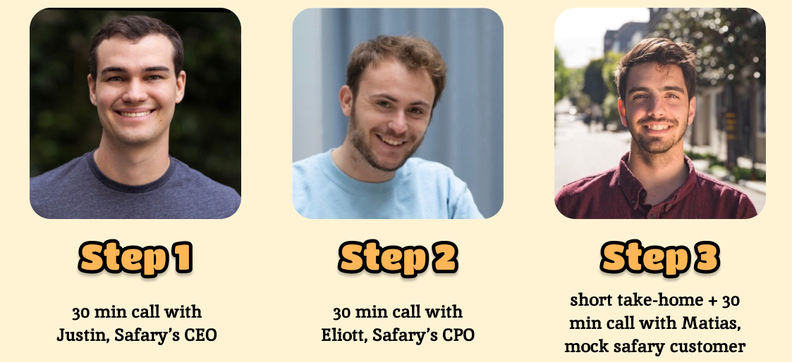 If we decided to move forward to this interview, theyād have a 30 minute call with Eliott about Safaryās product, which we encouraged them to check out beforehand.