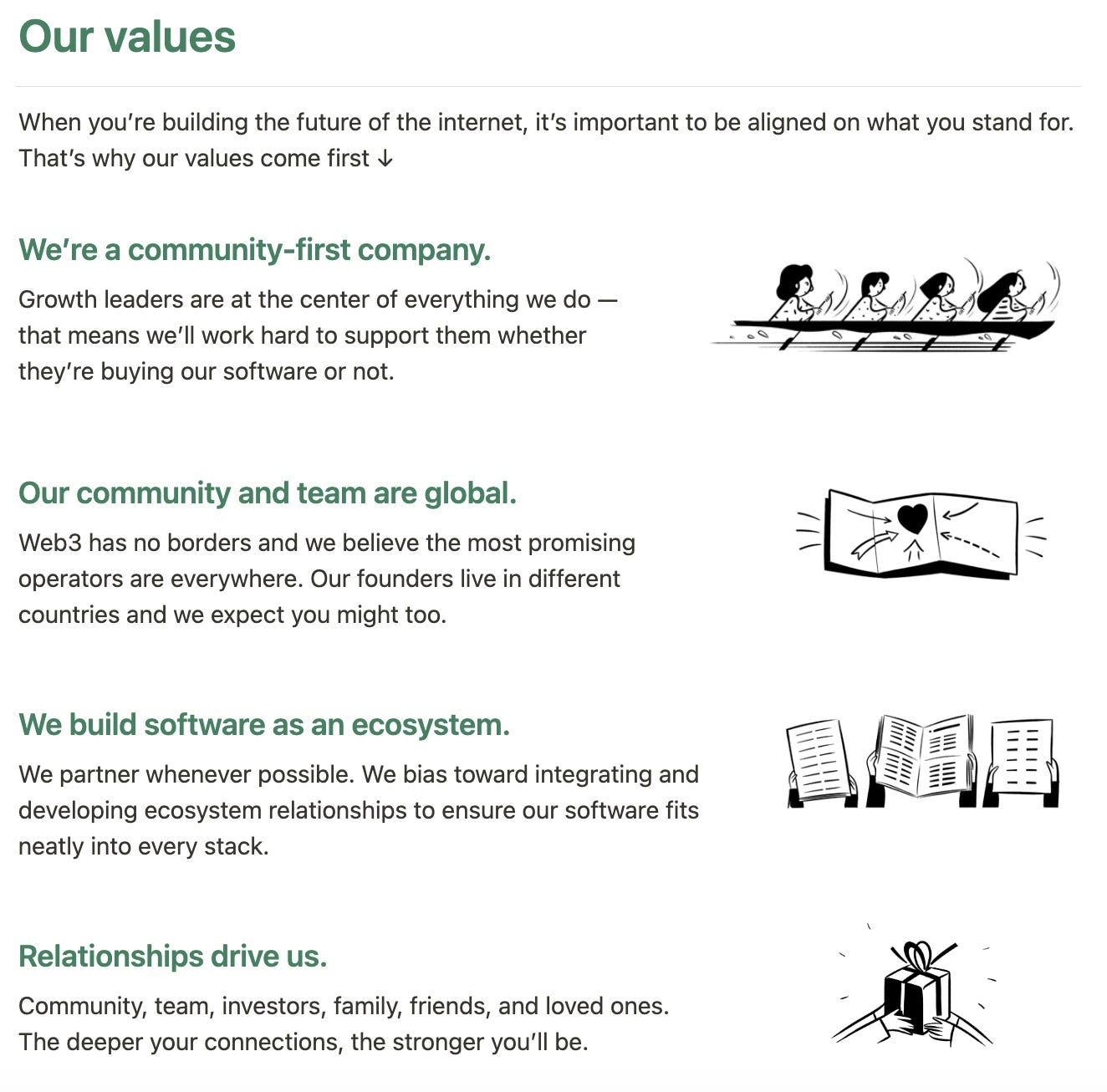 Like many web3 teams, we wanted candidates who were mission-aligned. Thatās why we showcase our values at the very top of our career page š
